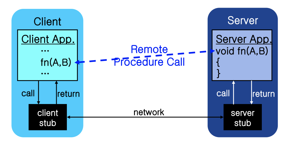 - Client stub / server stub => 양쪽에서 각각의 임무를 수행한다.