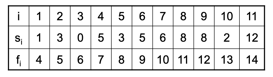 input : activity(a) 집합의 시작시간 (s), 종료시간(f)