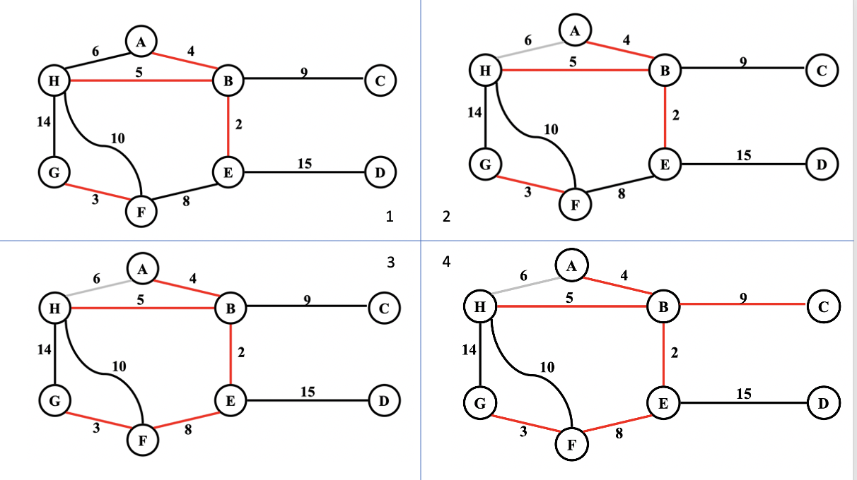 - 그래프의 edge들을 weight이 작은 것부터 순서대로 정렬한다.