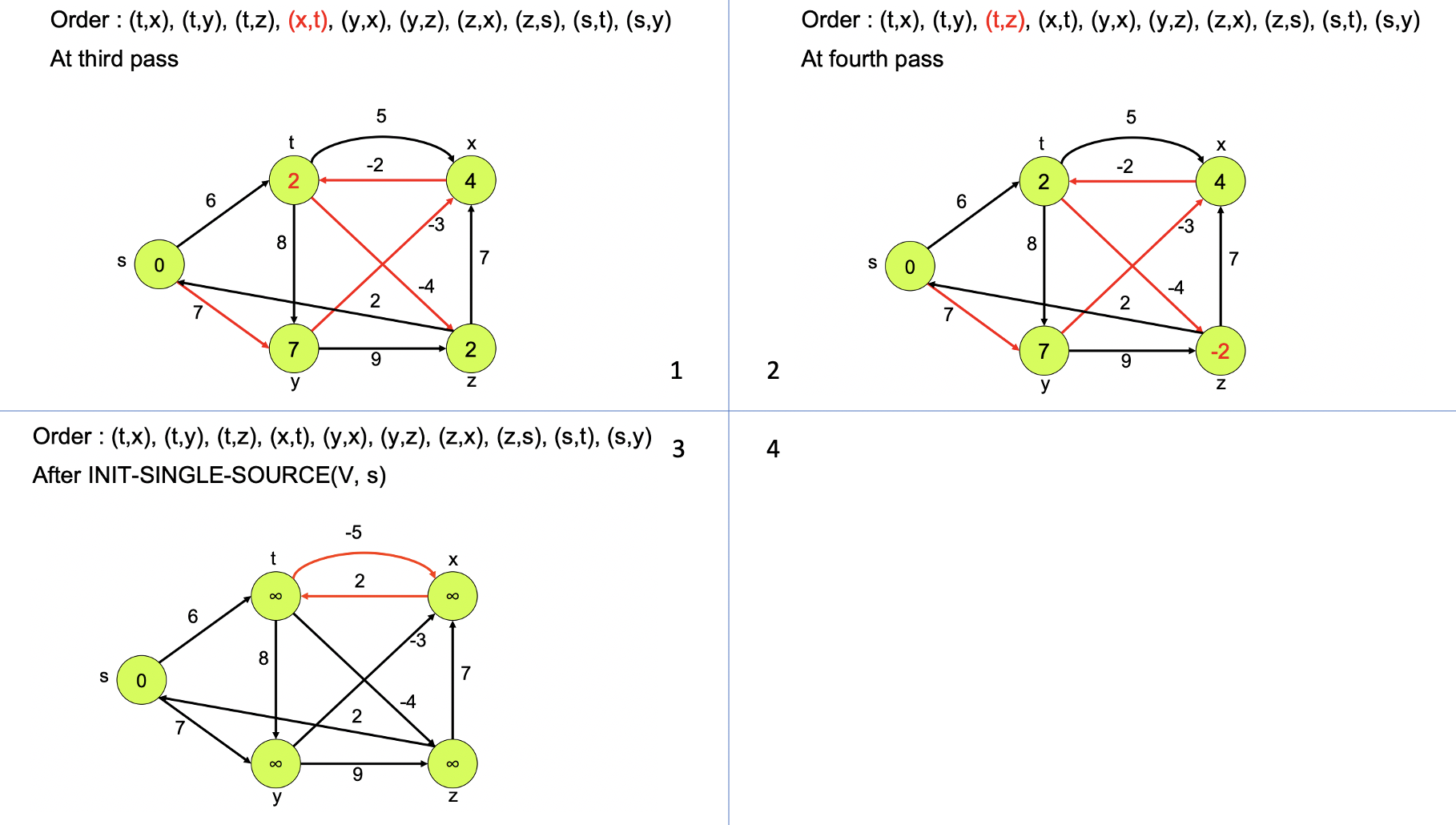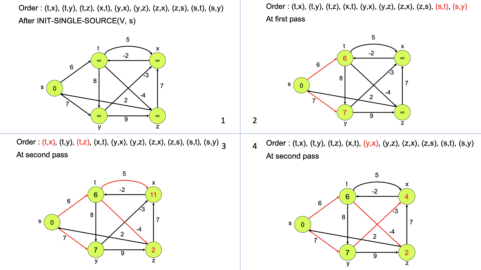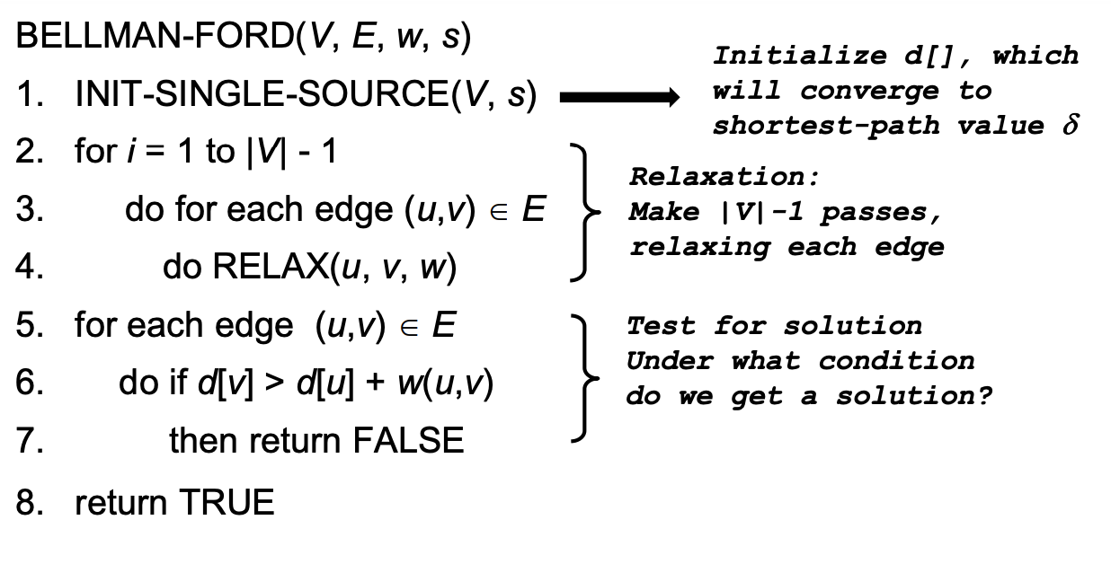 => 이 코드는 모든 edge를 훑는 과정을 |V| - 1 번 반복하기 때문에 Time Complexity는 O(VE) 이다.