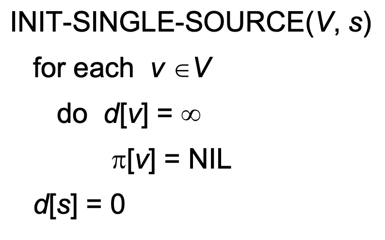 모든 V에 있는 vertex까지의 거리를 무한대로 만들어주고 π를 NIL로 초기화해준다.
